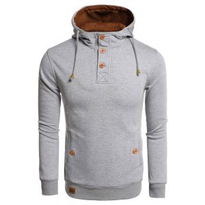 Gray Men Fashion Casual Hooded Long Sleeve Elbow Patch Sweatshirts Pullover Hoodie